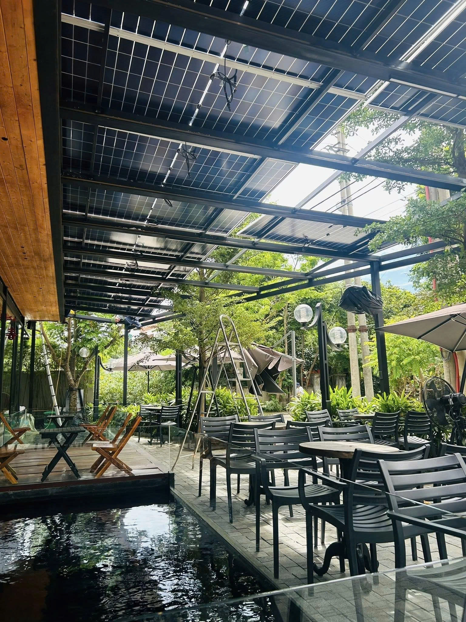 Giải pháp mái che điện mặt trời cho quán cà phê