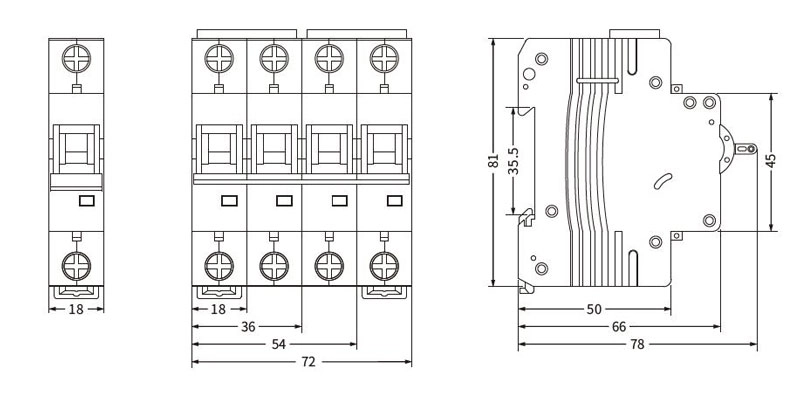 | Dòng điện định mức Trong | 1,2,3,4,5,6,8,10,13,16,20,25,32,40,50,63A |