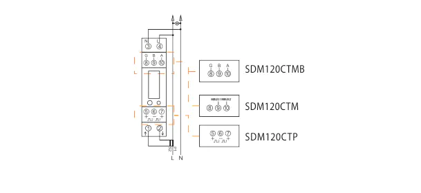 | SDM120CTM | 2 Đầu ra xung + RS485 Modbus | ||