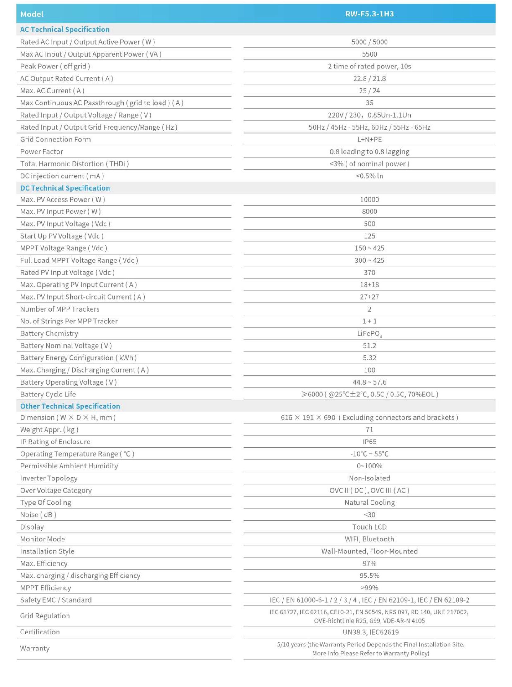 Pin lưu trữ lithium Deye All-in-One ESS – RW-F5.3-1H3 được thiết kế cho những chủ nhà đang tìm kiếm giải pháp đáng tin cậy về pin để lưu trữ điện tại nhà. Từ độ tin cậy được cải thiện và khả năng điều khiển trực quan đến các tùy chọn mở rộng linh hoạt, hệ thống này trao quyền cho bạn kiểm soát tương lai năng lượng của hộ gia đình. Tận hưởng sự độc lập lớn hơn, hiệu suất mạnh mẽ và sự an tâm đi kèm với nguồn điện an toàn, lâu dài.3. Chứng nhận: