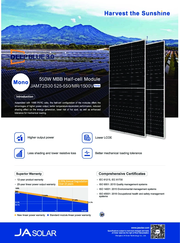 Tấm pin năng lượng mặt trời JA Solar 545w được sản xuất trên dây chuyền công nghệ tiên tiến của Châu Âu.